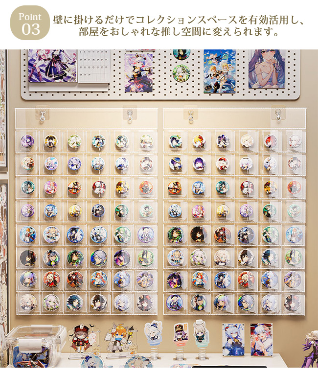 壁に掛けるだけでコレクションスペースを有効活用し、部屋をおしゃれな推し空間に変えられます。