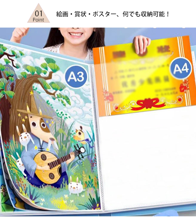 作品収納ファイル A3 60ページ 収納ファイル 作品アルバム 賞状を丸めず保管 賞状ファイル 通知表 子供の作品 思い出 習字 絵 集合写真 通知簿 爆買