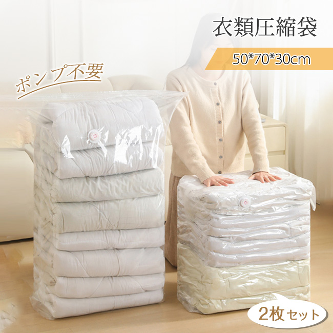 衣類圧縮袋 2枚 圧縮 衣類 押すだけ 掃除機不要 2枚セット 立体圧縮袋 手押し 衣類 収納 圧縮ボックス 衣類ケース カビ対策 防カビ ポンプ不要 衣類収納 爆買