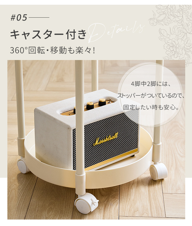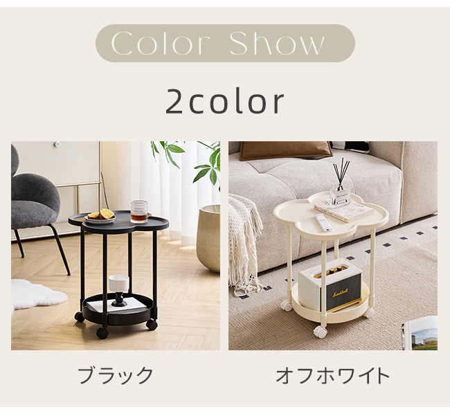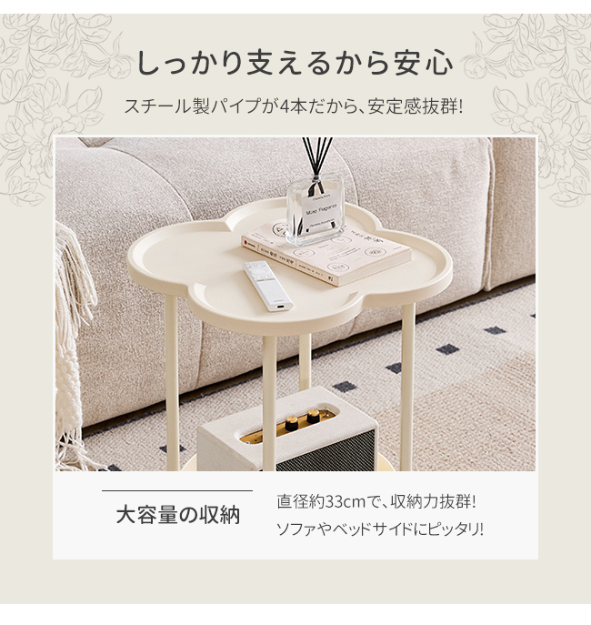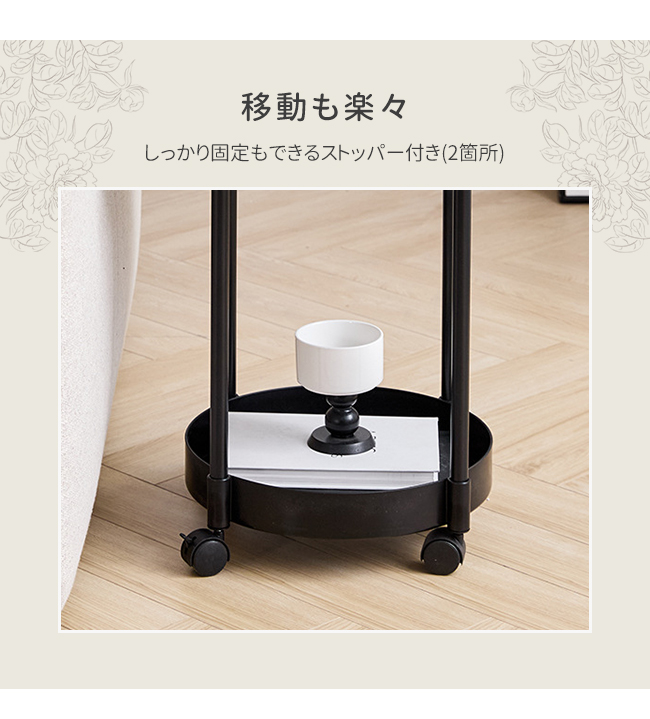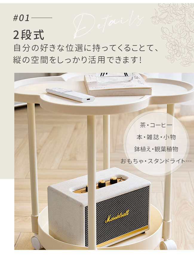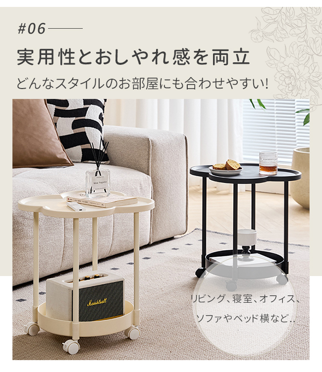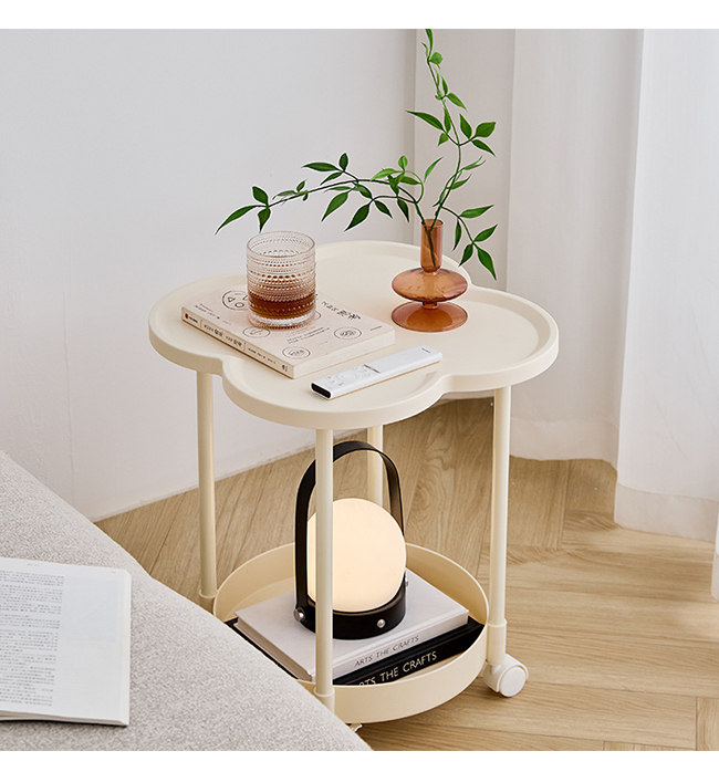 サイドテーブル 2段 多機能 サイドワゴン 収納 キャスター付き ナイトテーブル コンパクト 組立簡単 インテリア 新生活 花型 丸型 爆買