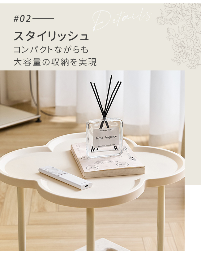 このテーブルは、サイドテーブル、ソファテーブル、ナイトスタンド、コーヒーテーブル、加湿スタンド、植物スタンド、収納棚などとして使用できます。