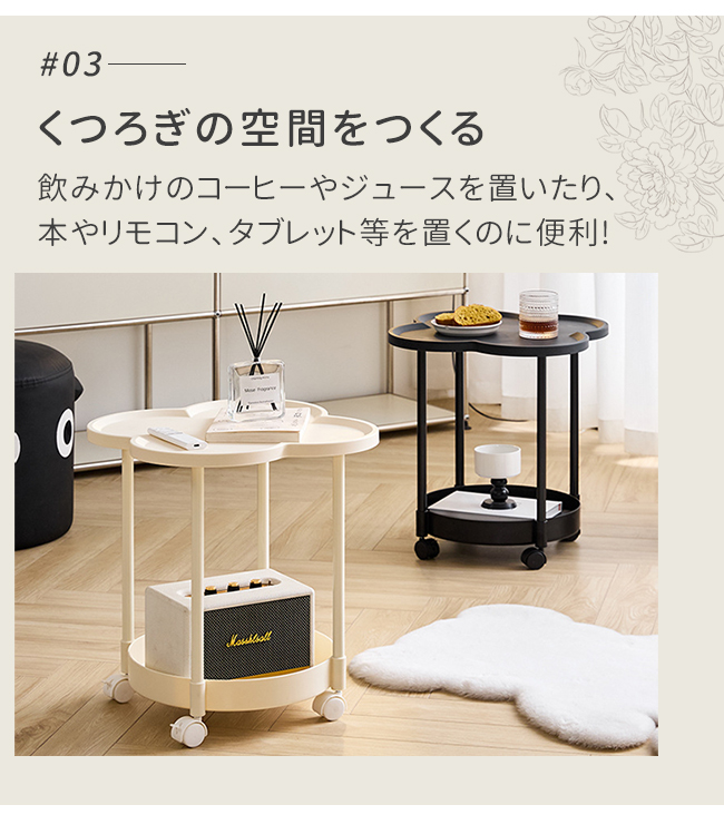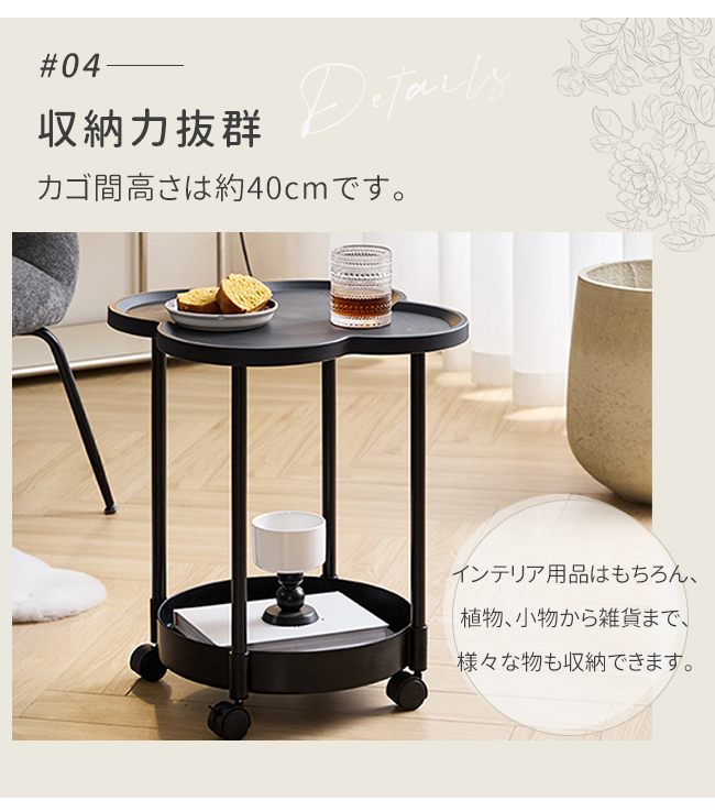 小型テーブル マルチワゴン ワゴン ベッド 寝室 リビング キャスター ソファーテーブル 4つ葉 クローバー 汚れにく