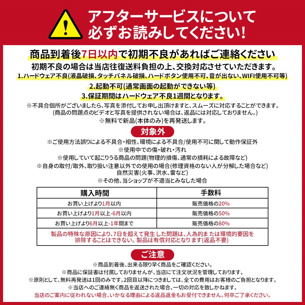 出荷前に厳格な品質検査が行われておりますが、万が一、お手元に届いた商品に欠陥があるか、使用中に疑問がある場合は、「注文履歴」-「出品者に連絡する」で弊社ショップにご連絡ください。担当者は24時間以内に返信し、真摯にご対応させて頂きます。