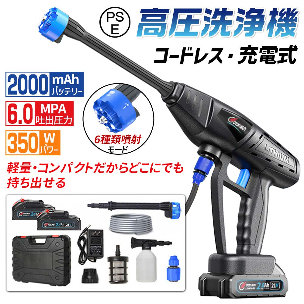 コンセントが必要なく、使い勝手が非常に良いため、屋外での作業や車の洗車などに最適です。また、強力な噴射力を持ち合わせており、汚れやホコリをしっかり落とすことができます。愛車の洗車にはもちろん、庭や窓、階段、外壁など、清掃が必要な場所に幅広く活用できます。6種類の機能ノズルが付属し、作業に合わせて使い分けることができます。