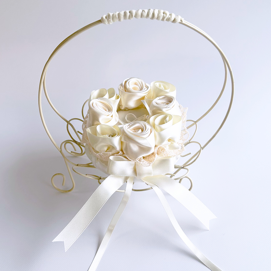 サーバーバスケットL付き ローズ リングピロー 完成品 シャンパンゴールド 結婚式 リングボーイ リングガール