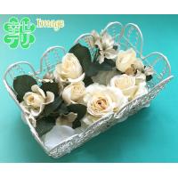 ミルキーホワイトのスクエアバスケットL(ワイヤーベース)幅24cm ワイヤーバスケット フラワーアレンジ フラワーベース 小物入れ