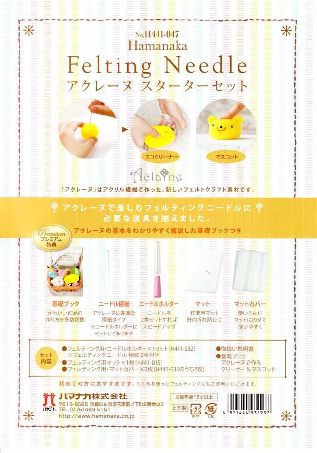 アクレーヌ フェルト手芸用 スターターセット 基本セット 極細ニードル・ニードルホルダー・マット・基礎ブック付き