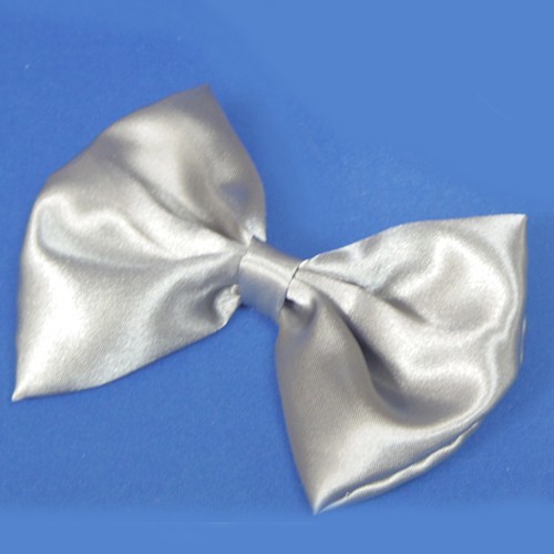蝶ネクタイ完成品 Lサイズ (サテンシルバー)サイズオーダー品 大きめのウェルカムドール・ぬいぐるみ・マスコット用