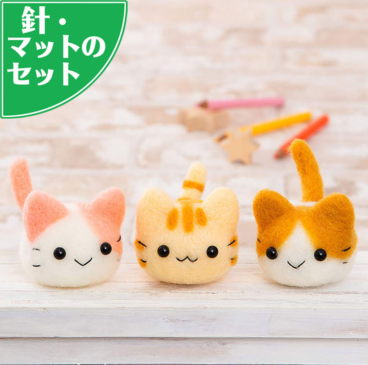 アクレーヌスターターキット付き 三つ子のころころ猫 手作りキットのセット フェルト手芸 ねこ