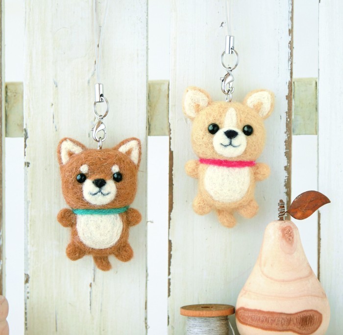 羊毛フェルトで作る柴犬とチワワのふわふわストラップ。