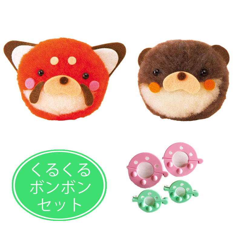 くるくるボンボン付き まんまる レッサーパンダ と カワウソ 手作りキット フェルト手芸