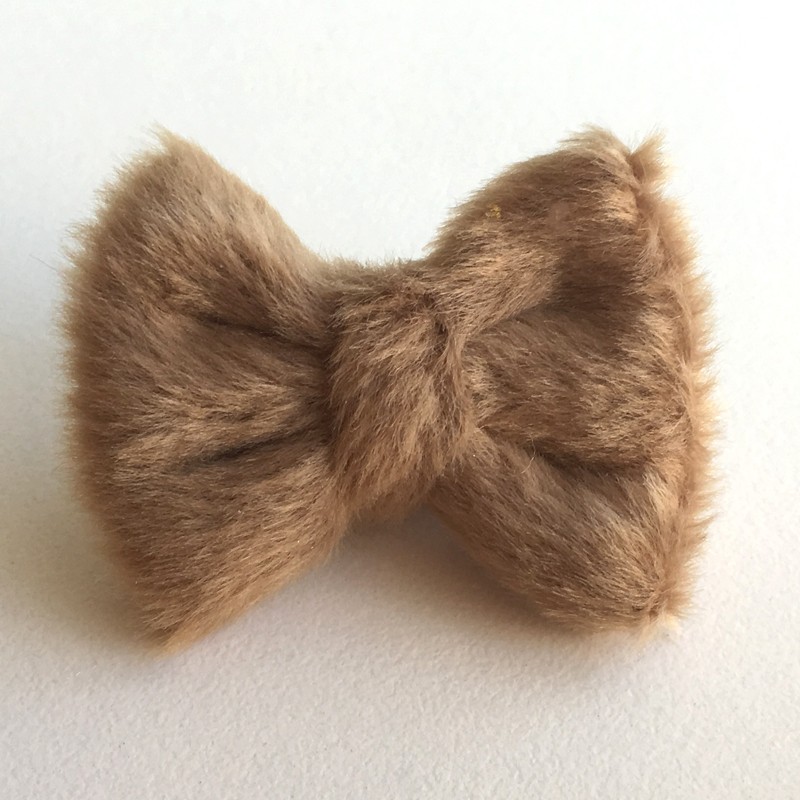 蝶ネクタイ完成品(フェイクファー生地・キャメルブラウン)サイズオーダー品 結婚式 ウェルカムドール用