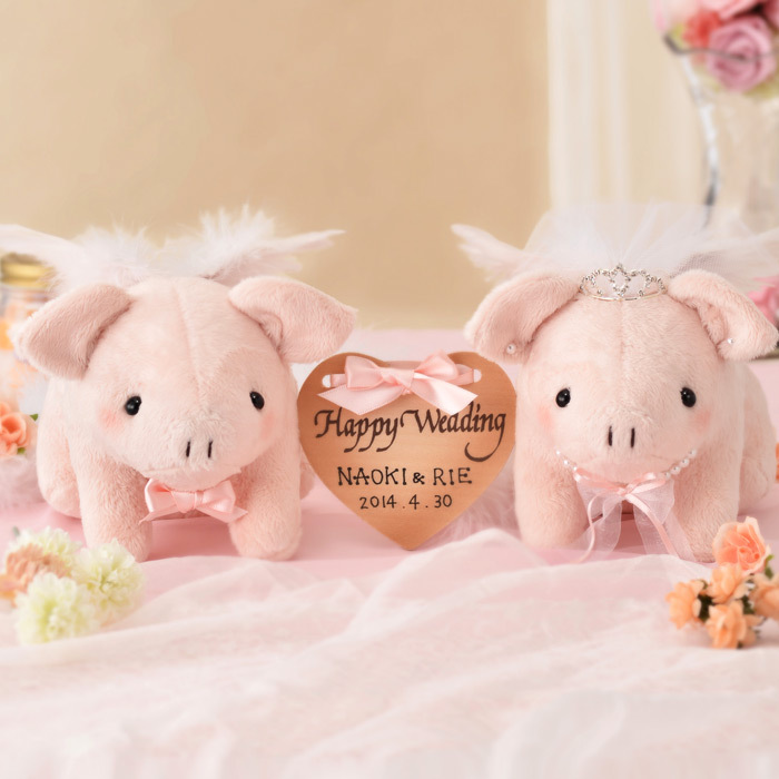 幸せを運ぶと言われる縁起の良い人気のぶたさんのウェルカムドールに天使の羽がつきました。