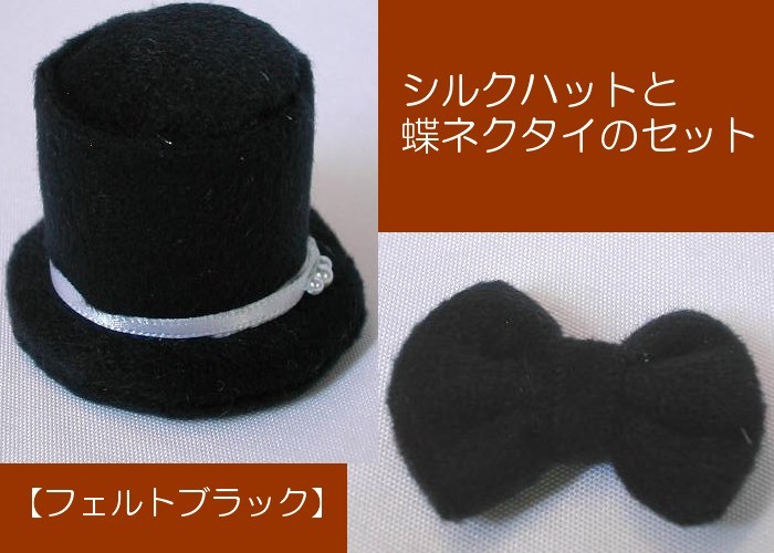 蝶ネクタイ&シルクハット完成品(フェルトブラック)サイズオーダー品 結婚式 ウェルカムドール用 花嫁diy