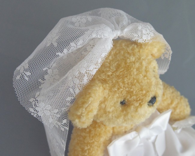 ヘッドドレス(トップの飾り)がないベールなので、もともとリボンやお花がついたぬいぐるみや、