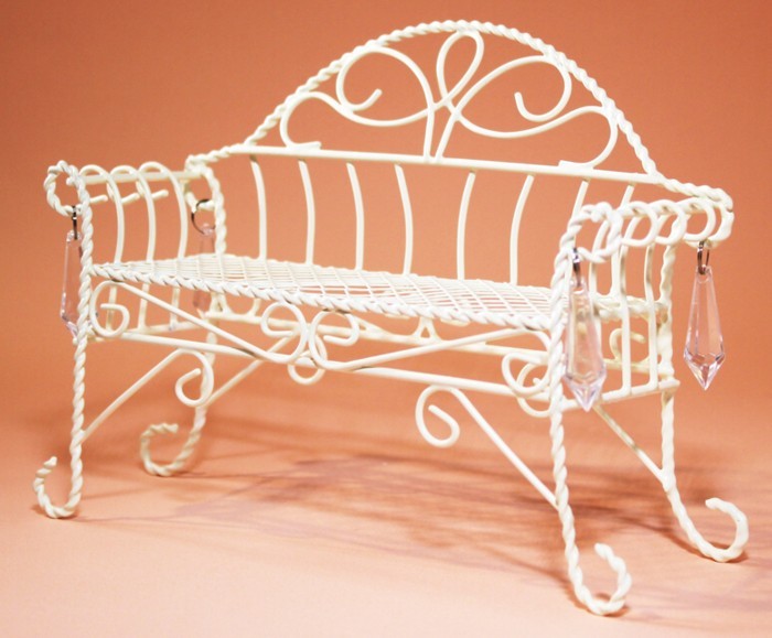 ワイヤーで出来た、エレガントなぬいぐるみ用ベンチです。