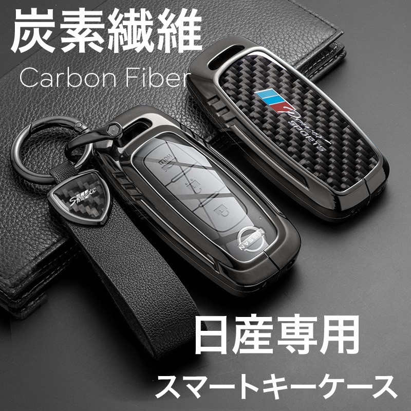 ■NISSAN 日産専用設計、炭素繊維 & 金属合金製キーカバーならではの高い質感と耐久性 (炭素繊維+金属合金+TPU+本革)キーホルダー付き