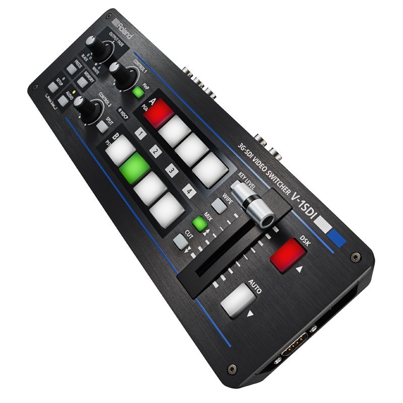 V-1SDIは、3G-SDI/HDMI に対応した4 チャンネルHDビデオ・スイッチャーです。業務用3G-SDI カメラやHDMI ビデオカメラ、タブレットPC やBlu-ray などを直接接続してシームレスで切り替えることができます。