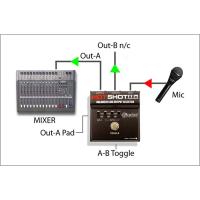 HotShot ABoはラッチ式のアウトプット・セレクターです。ノーマル・チャンネルとエフェクト・チャンネルを用意して、フットスイッチでエフェクトのオン/オフをしたり、客席側とモニター回線の出力切り替えたり、更にはマイクミュートスイッチとしても使用可能です。ABoは完全にパッシブ式なため電源不要です。コンパクトながら、14ゲージ・スティール・ボディ製なので、ステージの使用でも耐久性は十分です。