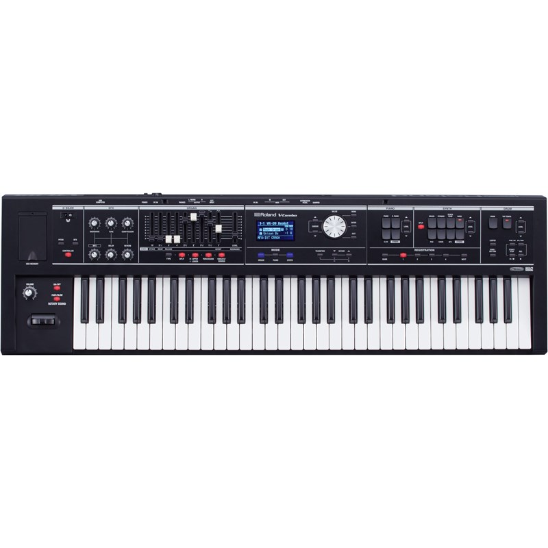 V-Combo VR-09-Bは、ライブ・キーボーディストに必要なサウンドと機能を、軽量でコンパクトなボディに納めたパフォーマンス・キーボード。オルガン、ピアノ、シンセの3つのセクションに分けられた優れたユーザー・インターフェースにより、必要な音色に素早く切り替えることができます。オルガンのサウンド・メイキングで重要なハーモニック・バー、7種類の同時使用可能なエフェクト、リアルタイム・コントロールに最適なパラメーターつまみを備え、ライブ、ステージ、スタジオなど、あらゆるシーンで即戦力となります。優れた演奏性と操作性、表現力豊かなサウンドをコンパクトなボディに集約したVR-09-Bは、ライブ・パフォーマーに必要なすべてを備えたパフォーマンス・キーボードです。