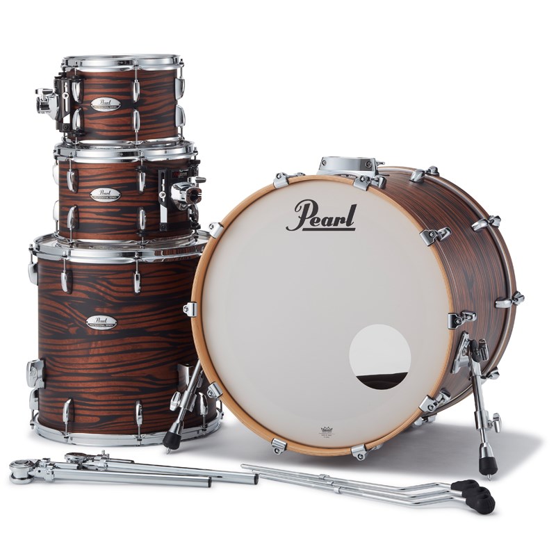 パールのマスターズシリーズは、今日までライヴツアーの酷使にも耐えうる、プロドラマー御用達のギアとして認められてきた。1980 年代中期、伝説の MLX ドラムをプロフェッショナルシリーズとして発表し、パワフルなメイプルサウンドとして高い評価を得た。そのオリジナル精神を受け継いだのがこのシリーズだ。やや薄めに設定された等厚 6 プライ(5.4mm)メイプルシェルに、安定感抜群のスーパーフープII、そして REMO UT ピンストライプ(タムタム、フロアタムの打面用)を標準装備。プロスペックでありながら、ビギナーにもやさしいスタンダードなモデルとして一貫したサウンドとパフォーマンスを発揮する。
