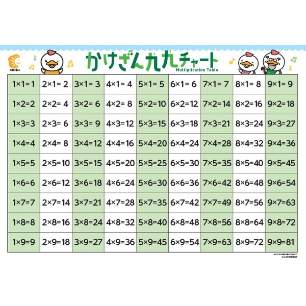 かけざん九九をいつでも目に付くところに貼って、覚えられるチャートです。濡らすとお風呂の壁などに貼ることができます。
