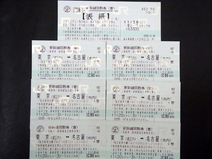 【超格安】 新幹線回数券(普) 東京-名古屋 6枚綴り 2021年3月1日まで有効 新幹線指定席特急券
