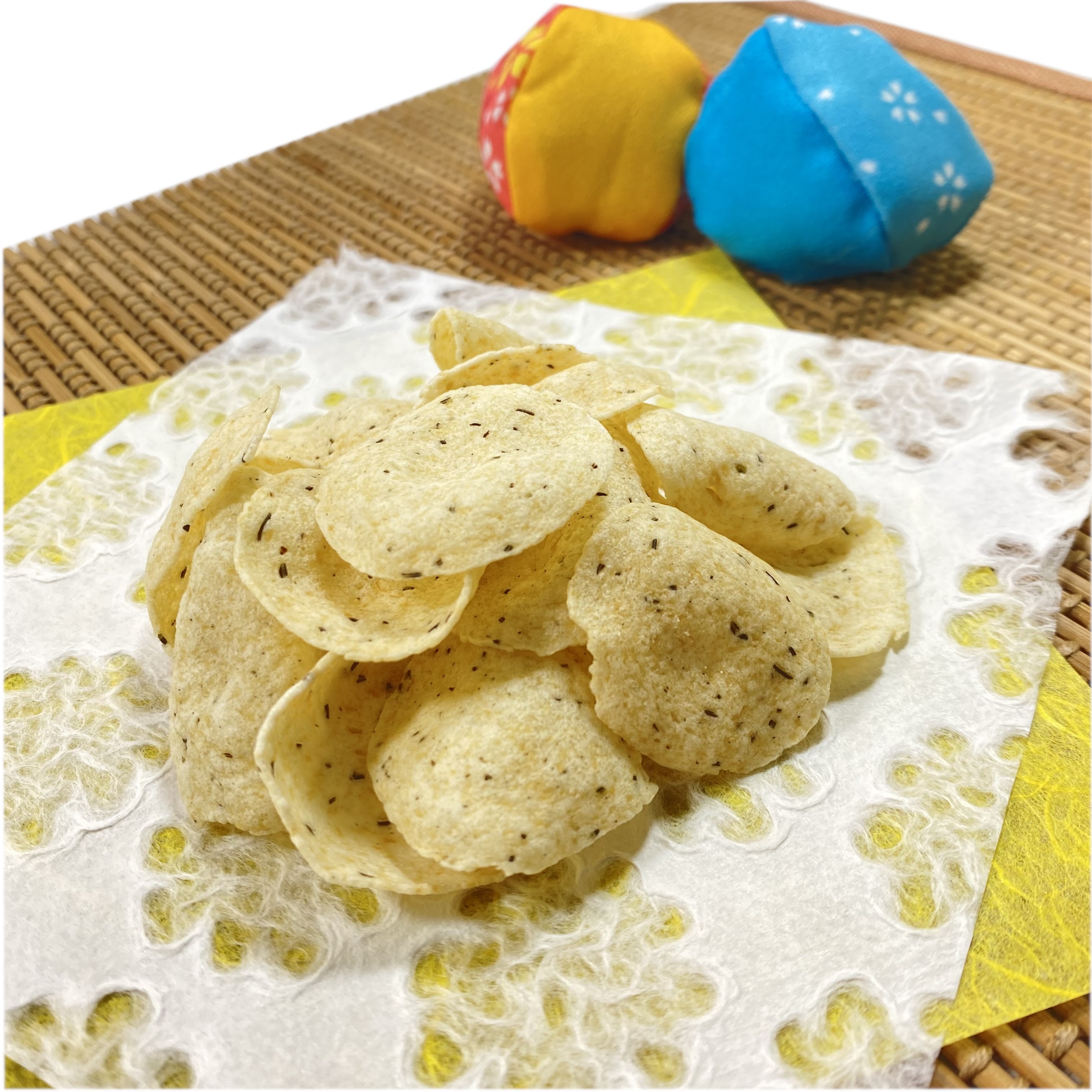 おからを主原料に米油でサクッと軽い食感に揚げた食物繊維たっぷりのチップスです。