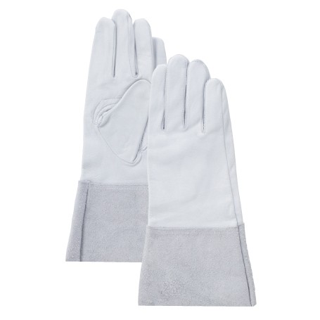 溶接用として袖が少し長いタイプの革手袋で、手の部分にはクレスト(牛革の表面)を使っていますので、少し柔らかい印象で細かい作業もしやすいと思います。
