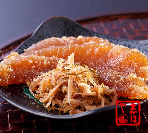 国産の新鮮なスルメイカ、とろろ昆布を加え醤油漬にしました。