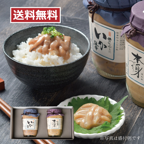 「昔ながらのいか塩辛」と「いか塩辛本身造り」の2本セット。