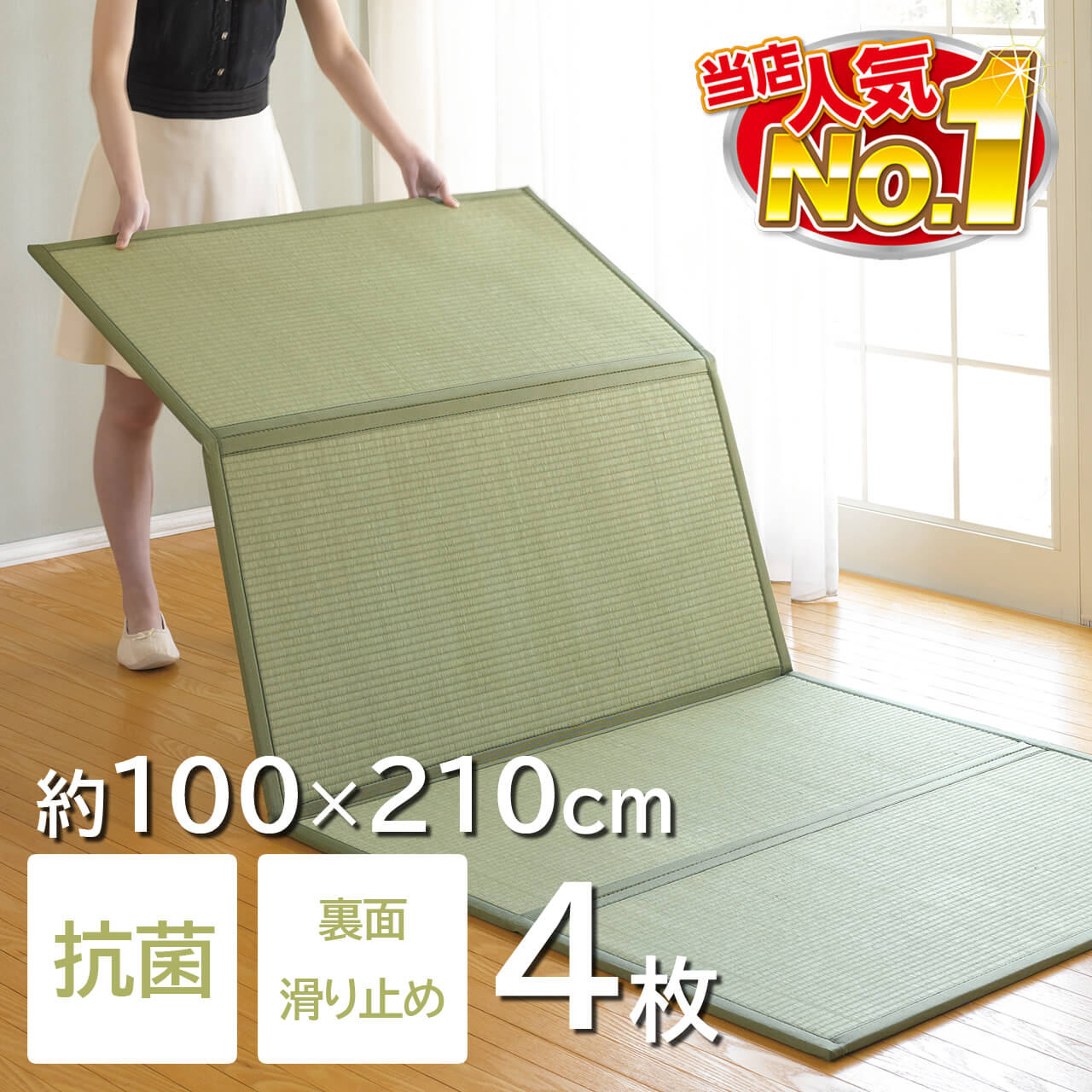 畳 マットレス い草 すべり止め シングル コンパクト 防カビ加工 抗菌機能 防音機能 衝撃軽減 緩衝 藺草 天然素材 敷物 四つ折り 約100×210×1.3cm 約4.3kg 4枚