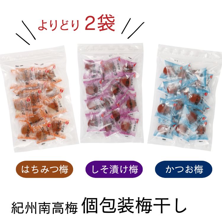紀州南高梅 個包装梅干し「しそ漬け梅・はちみつ梅・かつお梅」 よりどり2袋セット 200g(個包装込み)×2袋