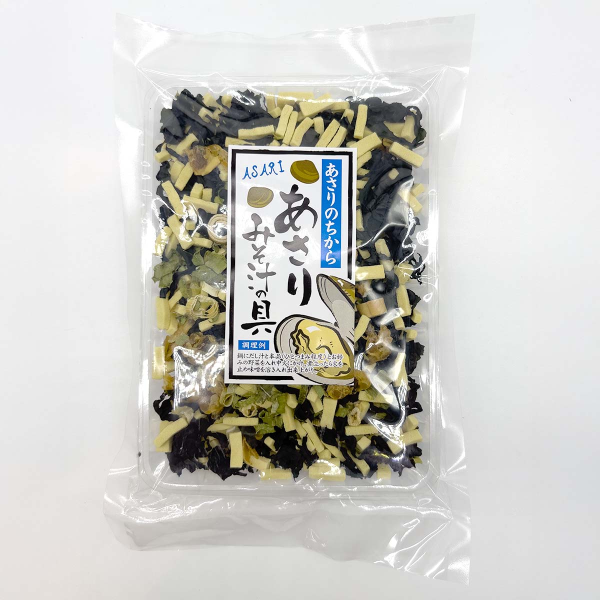 凍り豆腐、わかめ、巻き麩、ねぎに、あさりを加えた、乾燥タイプのお味噌汁の具です。