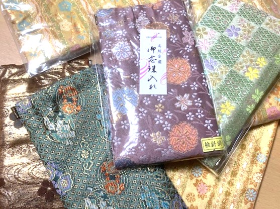 簡易包装。金らん生地で桜や花がが散りばめられた高級生地多数。