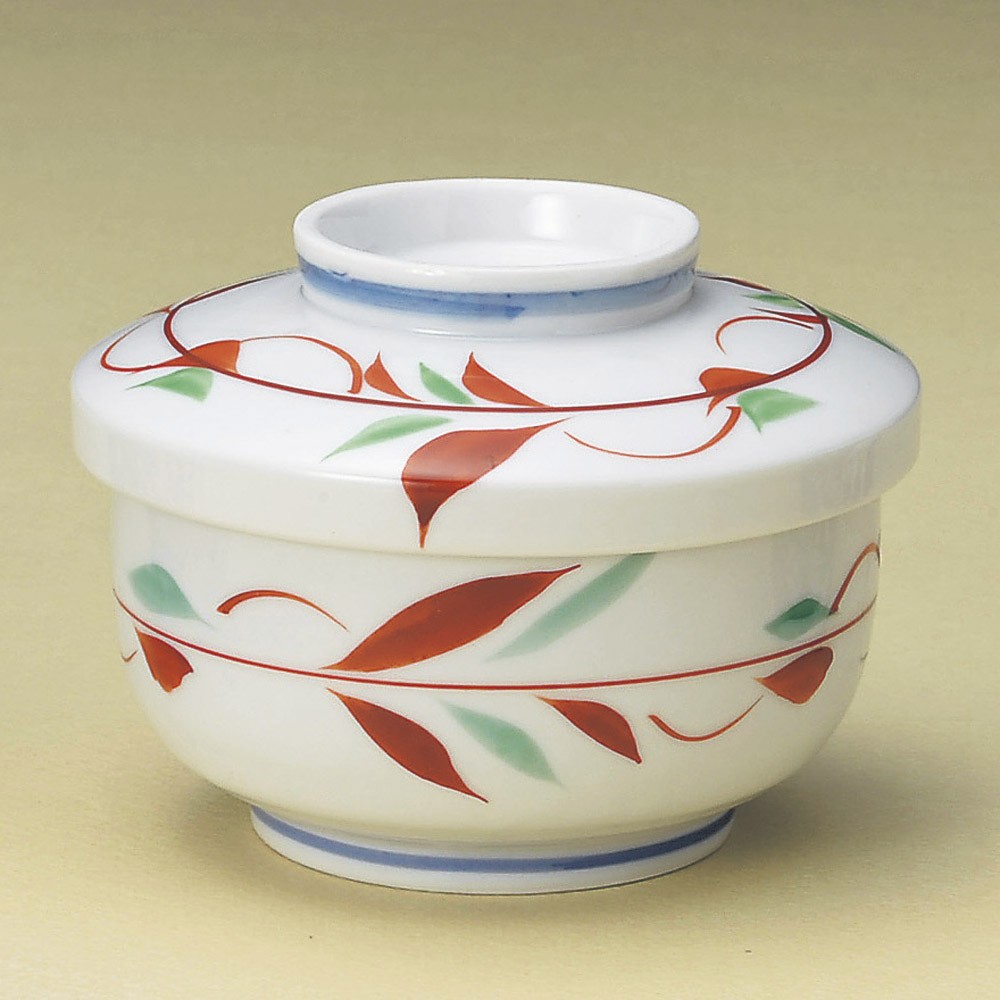 茶碗蒸し 器 赤絵ツタ花平むし碗 おしゃれ 和食器 業務用 美濃焼