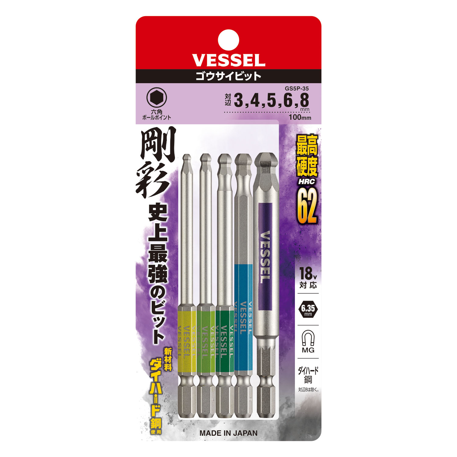ベッセル No.GS5P-35 片頭ボールポイント(六角) 剛彩ビット 5本組(アソート) 傾けたままネジが回せるボールポイント 18v対応 マグネット付き◇