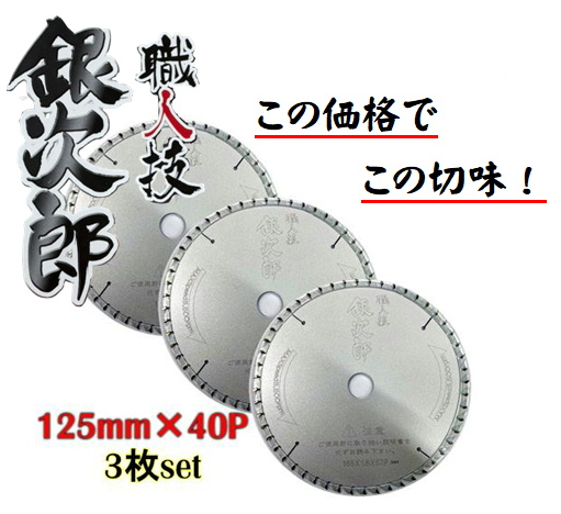 【3枚set】職人技銀次郎チップソー 125×40P SWG-12540 木工用 マキタ HIKOKI その他マルノコ対応 切断用 刃 DIY 工具【この価格でこの切味】◇