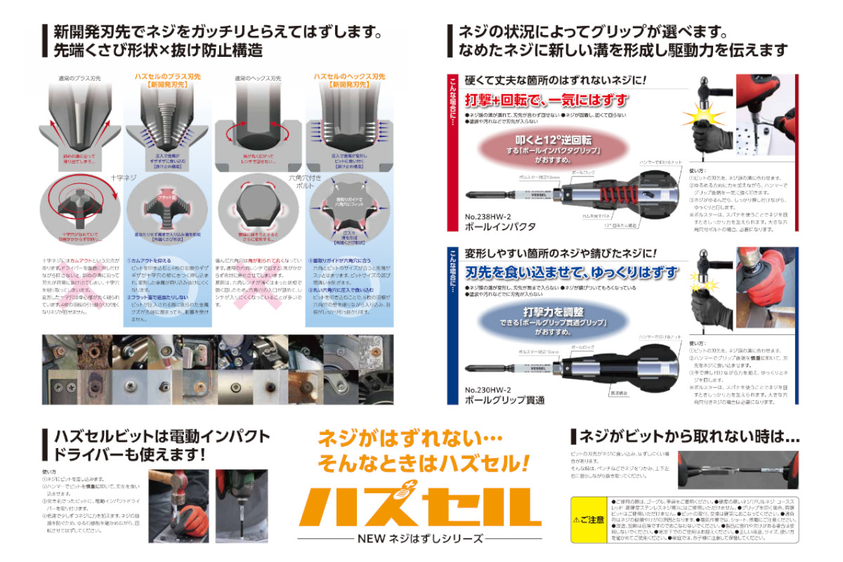 ●ボールインパクタやボールグリップ貫通のグリップと組み合わせてネジはずしに