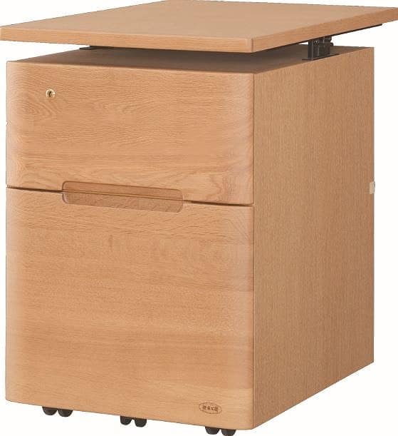 浜本工芸 デスクワゴン ワゴン キャスター付き 昇降 木製 木目 ナチュラル ワゴン No.0904昇降袖B ナチュラルオーク (配送員設置)