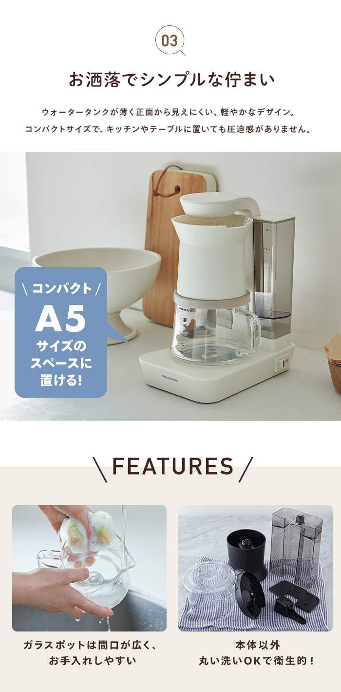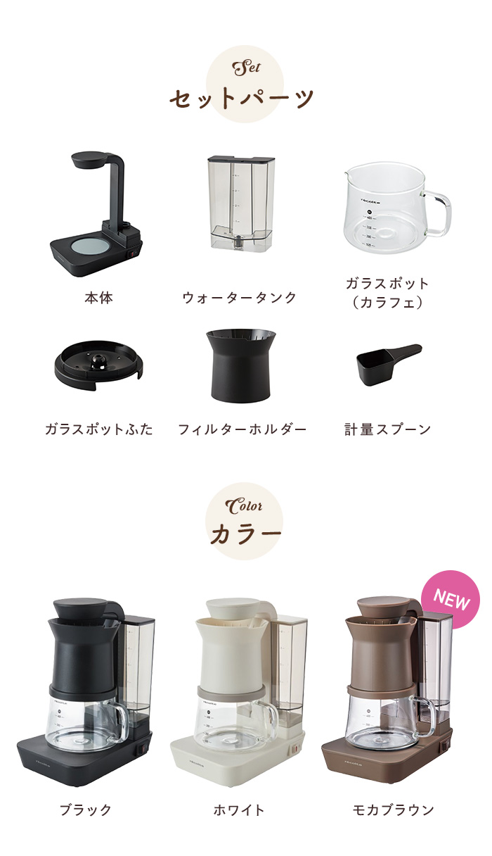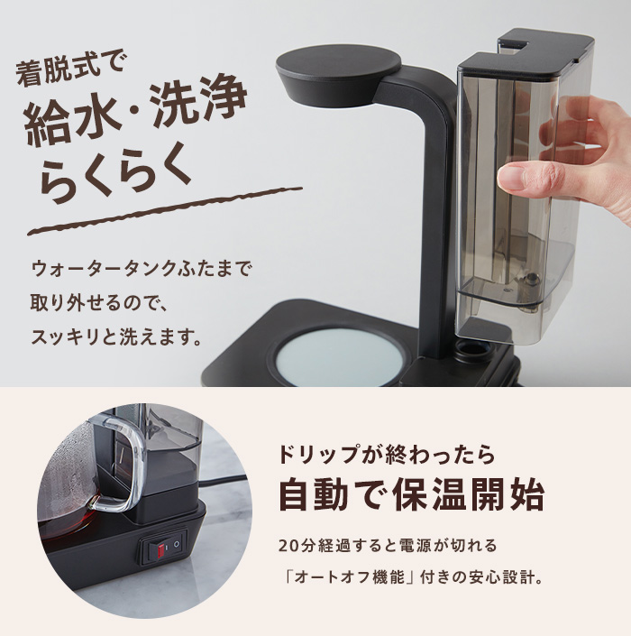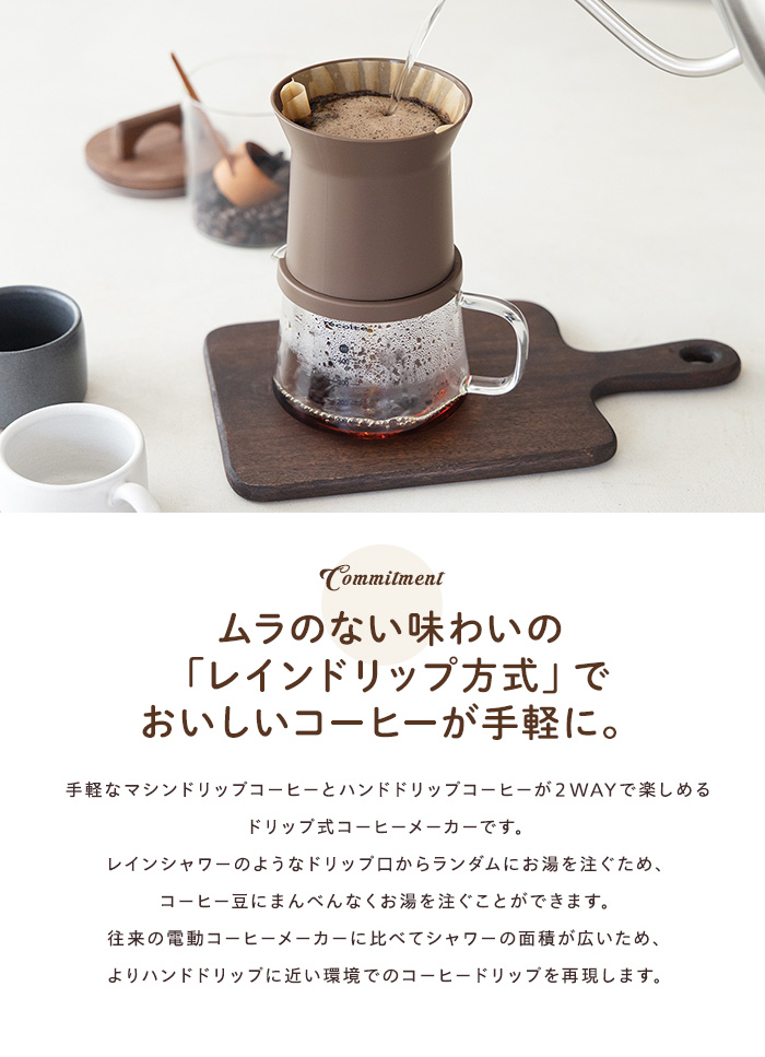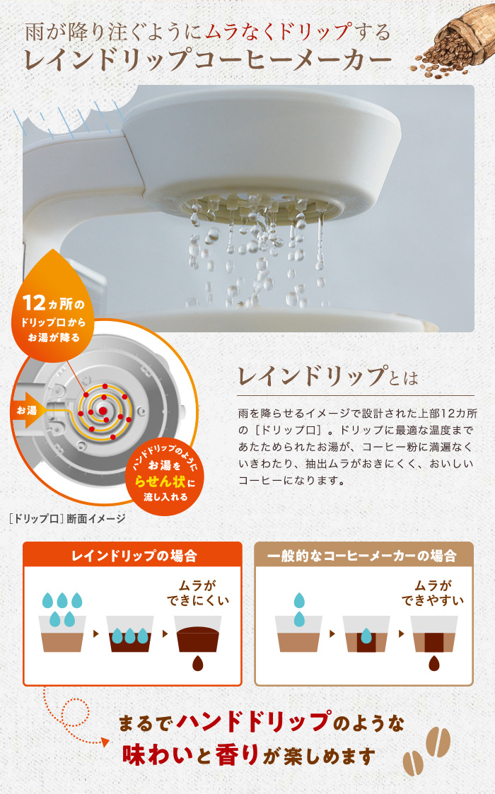 独自開発の「レインドリップ方式」で抽出ムラがおきにくく、おいしいコーヒーが手軽にいれられるコーヒーメーカー