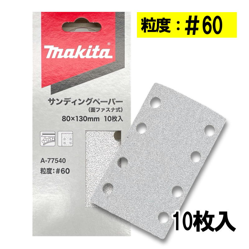 マキタ A-77540 サンディングペーパー 寸法80mm×130mm #60 10枚入 (四角タイプ) ◇