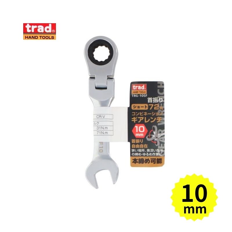 trad(三共コーポレーション) TRG-10SF 首振りギアコンビレンチ ショート 10mm