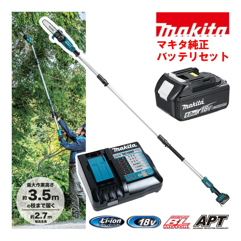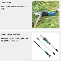 | 商品仕様 | セット内容 本体(MUA200DZ)、バッテリー(BL1860B)、充電器(DC18RF) ※バッテリー、充電器の説明書は不足しておりません。 ガイドバー長さ:200mm ガイドバー形式:スプロケットノーズ 作業高さ:最大約3.5mの枝まで届く |