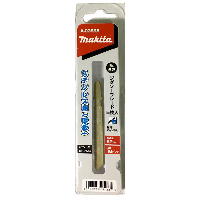 マキタ No62(A-03595) ジグソーブレード(5枚入) ステンレス用 全長75mm 山数18 Bタイプ ◇