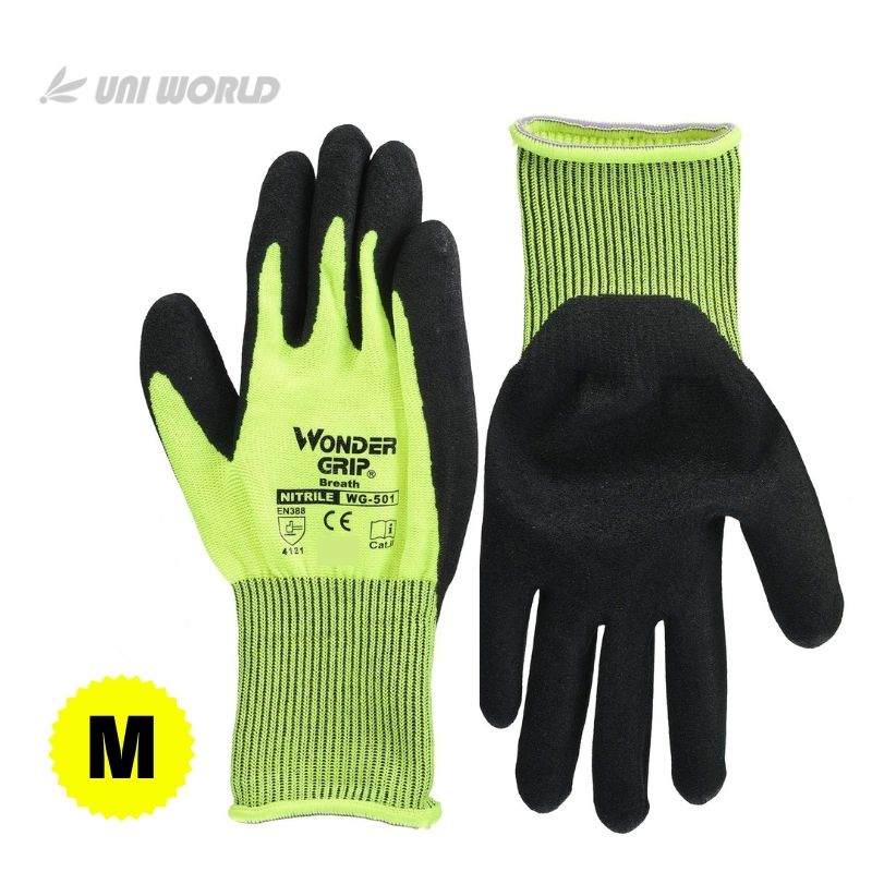 ユニワールド WG501 ワンダーグリップ ブレス 手袋 蛍光イエロー M ●