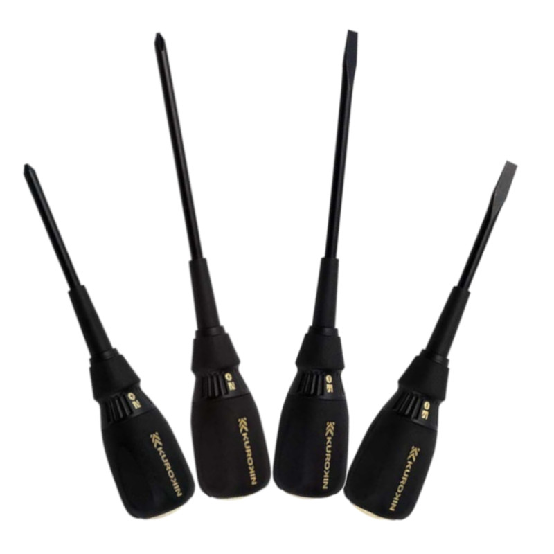 ●潰れたネジやサビたネジを緩めるのに最適です。【黒金4点セット】 フジ矢 524K-BG 貫通ドライバー(+)2×100・526K-BG(+)2.0x150・564K-BG(-)6×100・566K-BG(-)6×150 ◆
