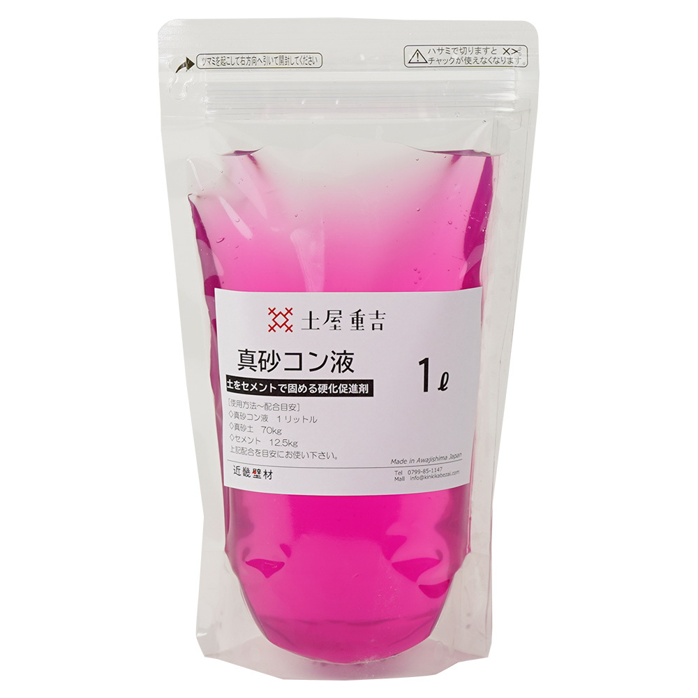 (2)真砂コン液を水で希釈し、必要量投入し十分攪拌して下さい。混練の硬さは、バサバサにしほとんど水分が無いようにします。手で握り締め固めても崩れない程度の硬さにします。