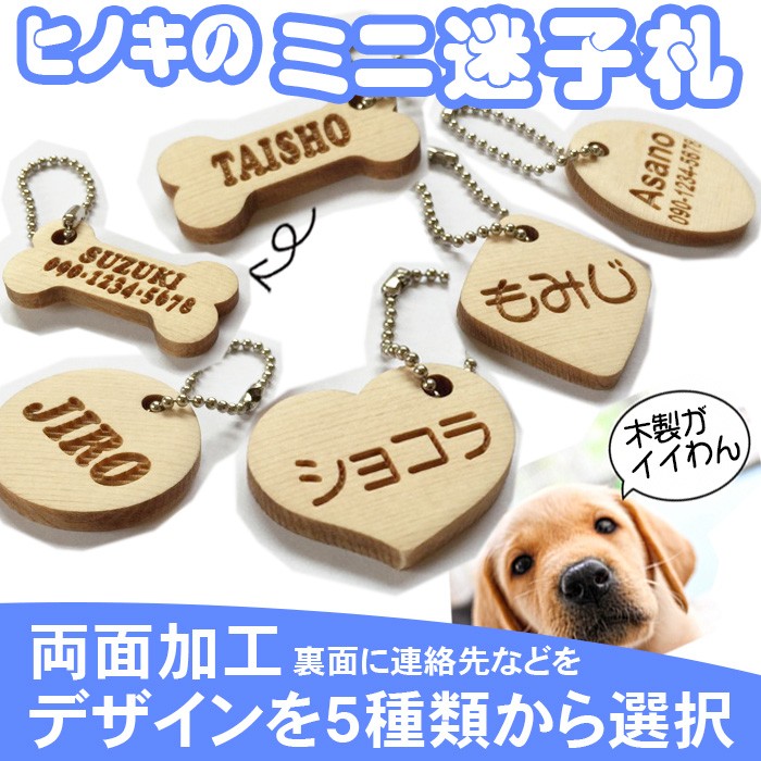 犬 迷子札 木製 ネームプレート ネームタグ 名入れ キーホルダー ヒノキ 桧 檜 猫 刻印 可愛い 名前入れ pet nameplate nametag