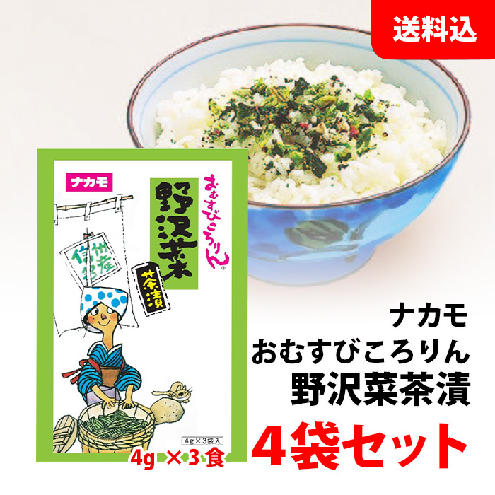 送料無料 メール便 おむすびころりん 野沢菜 茶漬 4袋セット (1袋:3食入) 長野 お土産 個包装 ふりかけ 菜飯 おにぎりの具 お茶漬けの素 ナカモ